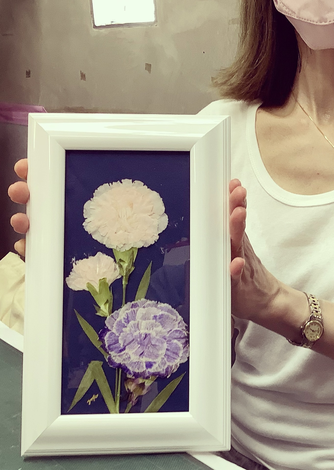 こちらは生徒さんの作品です。初めて作る押し花作品とは思えないくらい素敵な仕上がりですね!